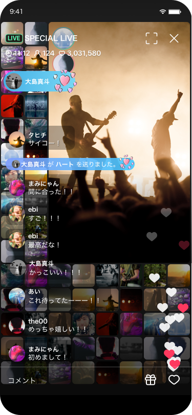完全有料会員制の安心安全な空間で、チャット・ライブ配信・チケッティング・オンラインショップなど多彩な機能でファンとのコミュニケーションをアプリ一つで完結させることができます。